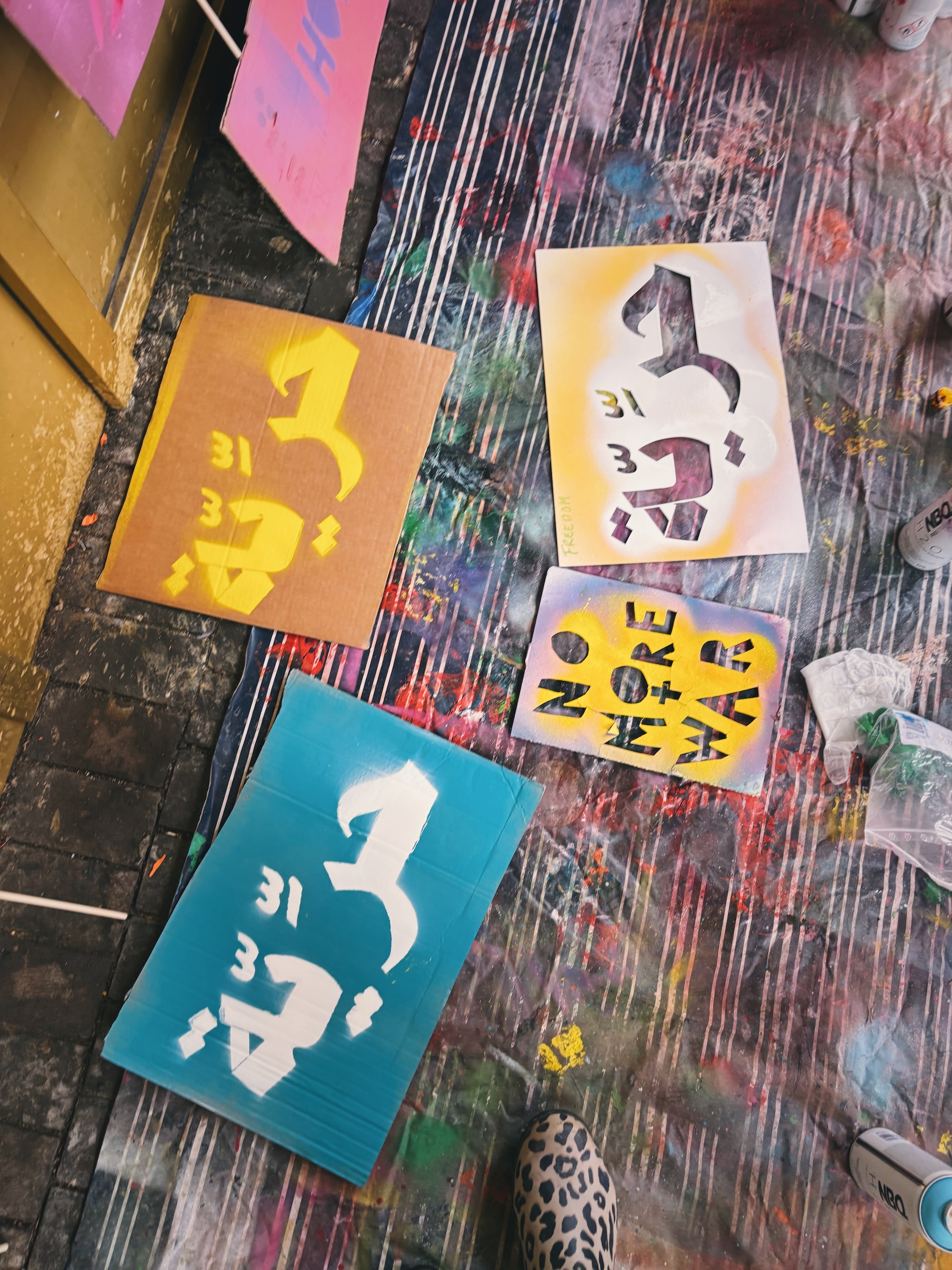 14.05: Hva vil du si? Gatekunstnere blir gjerne gatekunstnere fordi de har noe å si. Vi jobber med å lage tydelige budskap, og du får jobbe med en mye brukt metode: sjablonger. Vi lager våre egne sjablonger + bruker noen vi har fra før. Vi jobber hovedsakelig med spraymaling.